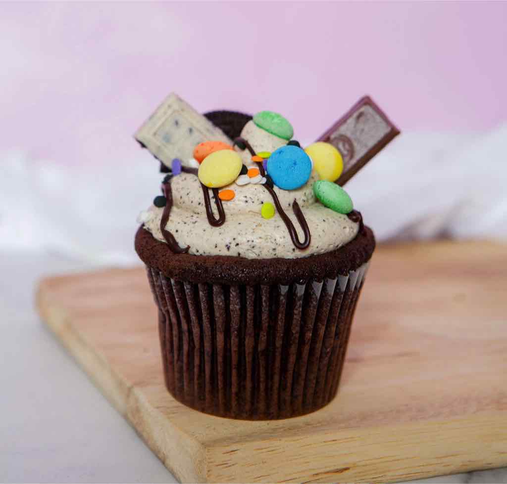 chocolate cake with Oreo buttercream (smarties, M&M or Hershey’s)