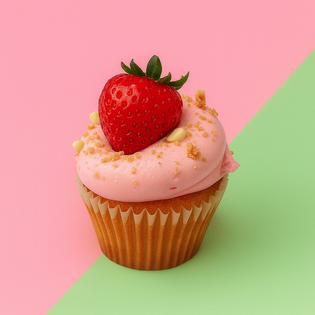 Vanilla cake loaded with strawberries and white choco chips, topped with strawberry cream cheese