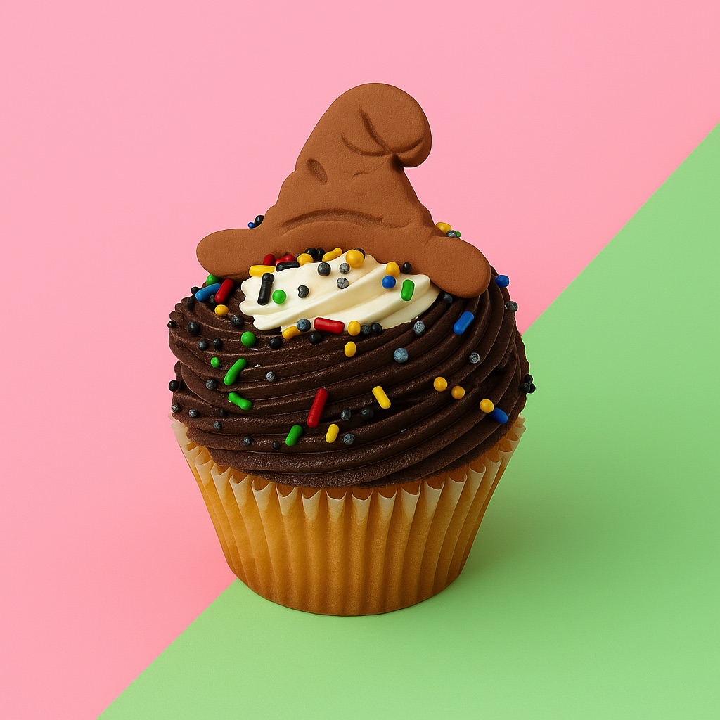vanilla or chocolate cake filled with colorful buttercream with sorting hat cokkie on top
